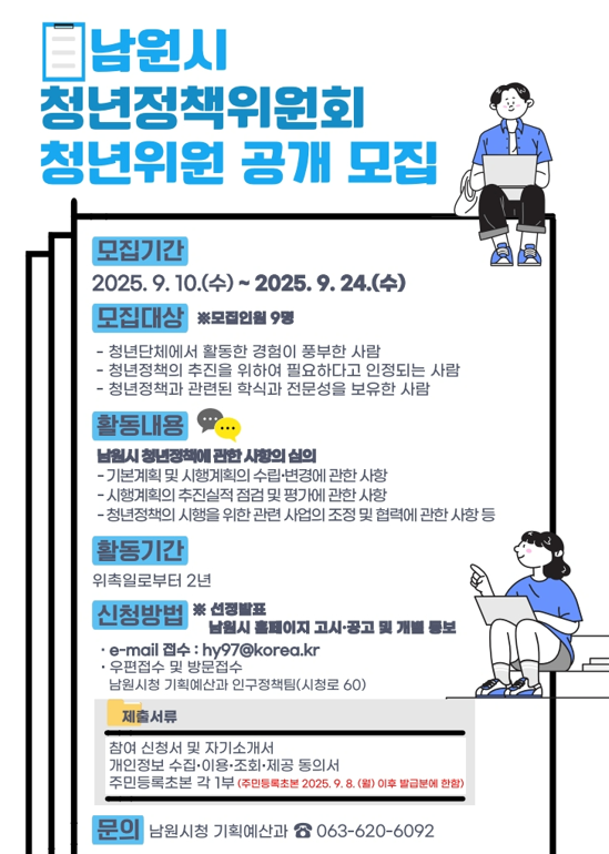 제4기 남원시 청년정책위원회 위원 모집(~9/24)