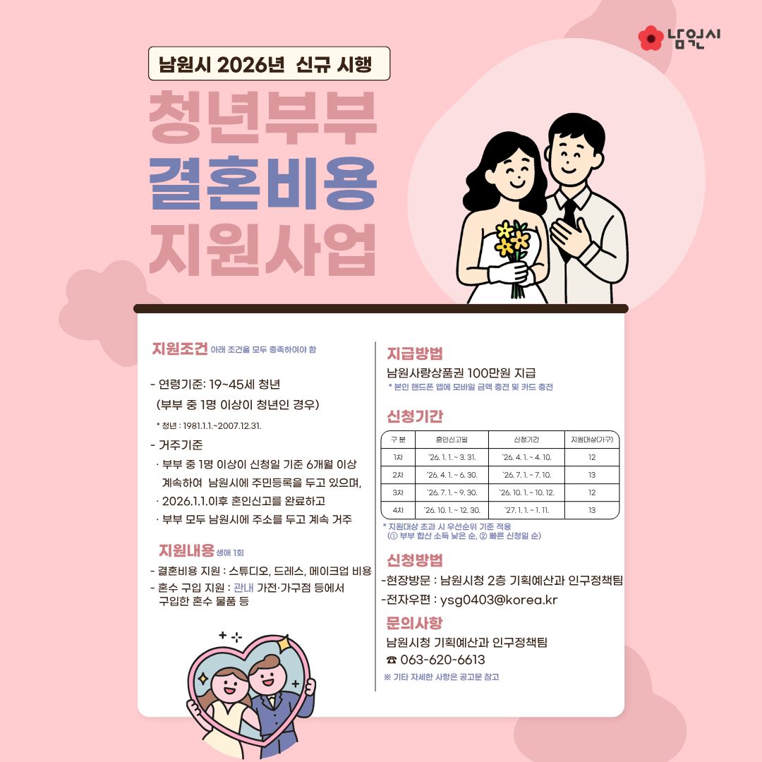 2026년 남원시 청년부부 결혼비용 지원사업
